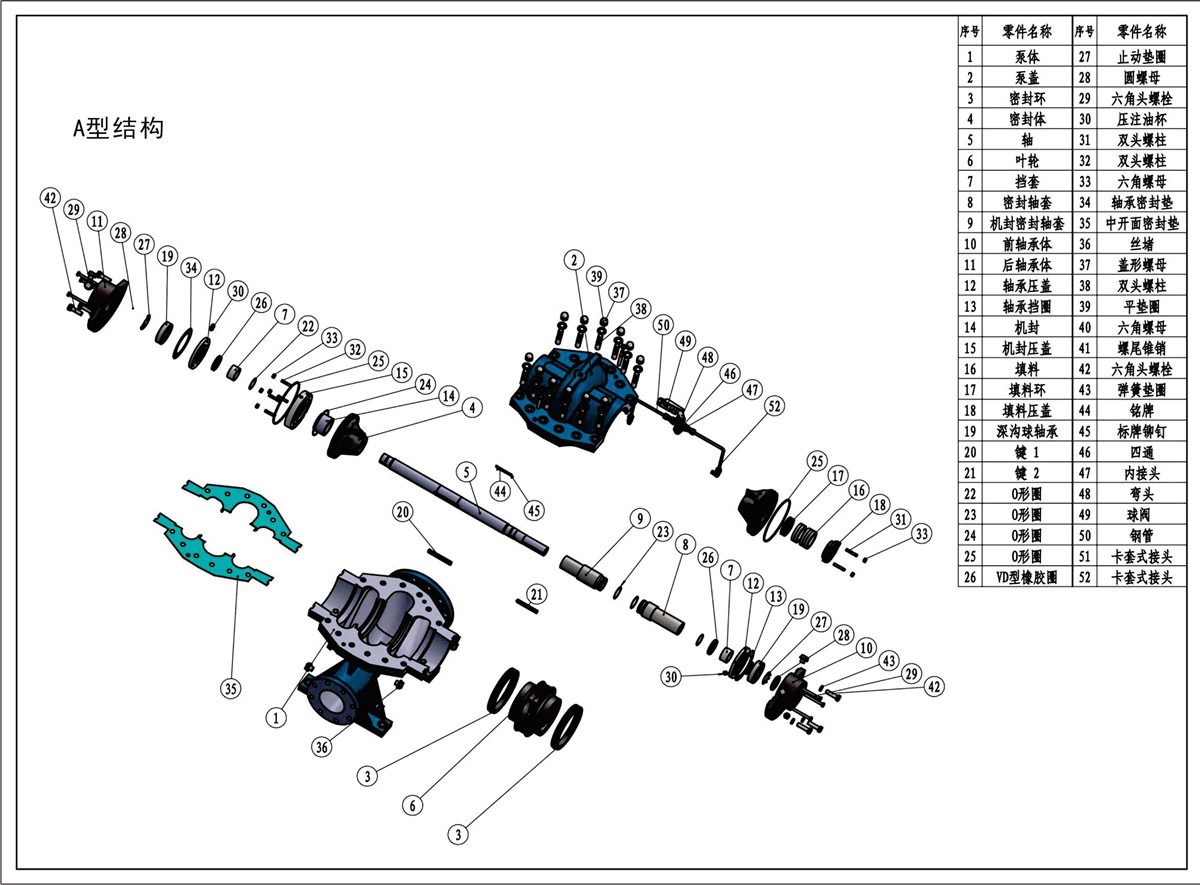 1. 叶轮为双吸式结构,可使轴向力得到平衡。